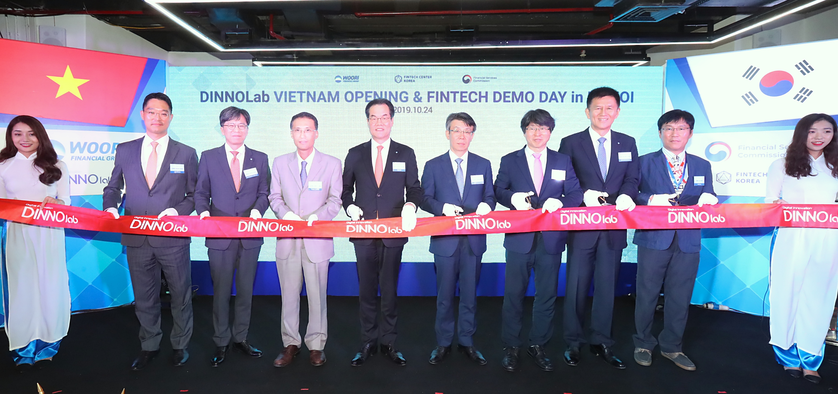 우리금융그룹(회장 손태승)은 지난 24일 동남아 진출을 원하는 스타트업(신생 벤처기업)을 지원하기 위해 베트남 하노이에 핀테크랩 센터인 ‘디노랩(Digital Innovation Lab) 베트남’ 출범식을 가졌다고 25일 밝혔다. 이날 출범식은 ‘핀테크 데모데이’와 함께 진행됐으며, 최 훈 금융위원회 상임위원, 이동연 우리에프아이에스 대표이사 겸 우리은행 최고정보관리책임자(CIO), 정유신 한국핀테크지원센터장, 정우진 주베트남 총영사 등 주요인사가 참석했다.