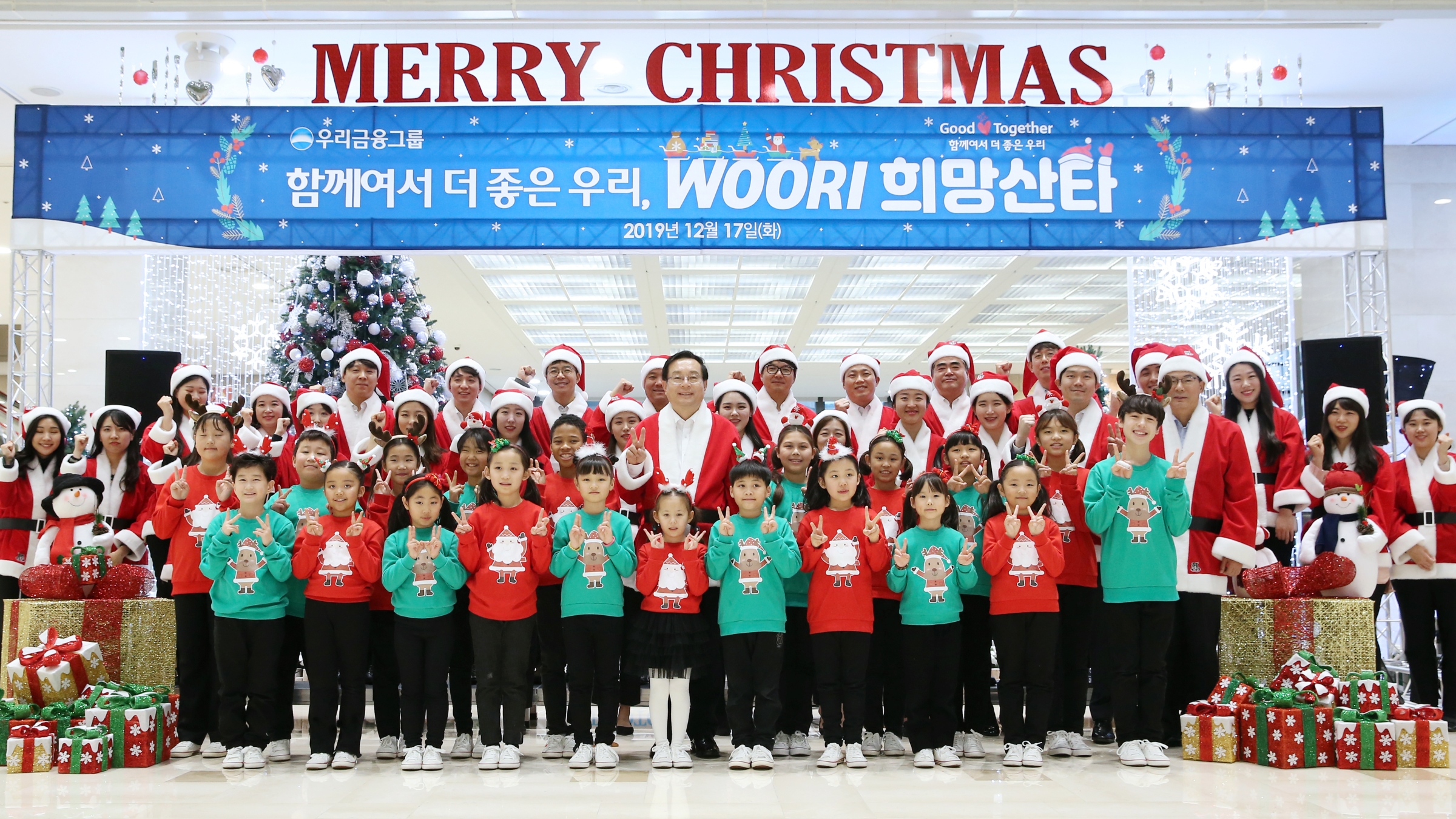 ‘함께여서 더 좋은 우리, WOORI 희망산타’ 캠페인은 우리금융그룹 임직원이 ‘WOORI 희망산타’가 되어 다문화 및 소외계층 어린이들에게 크리스마스의 특별한 경험과 추억을 선물하기 위해 자발적으로 참여하는 사회공헌 활동이다.