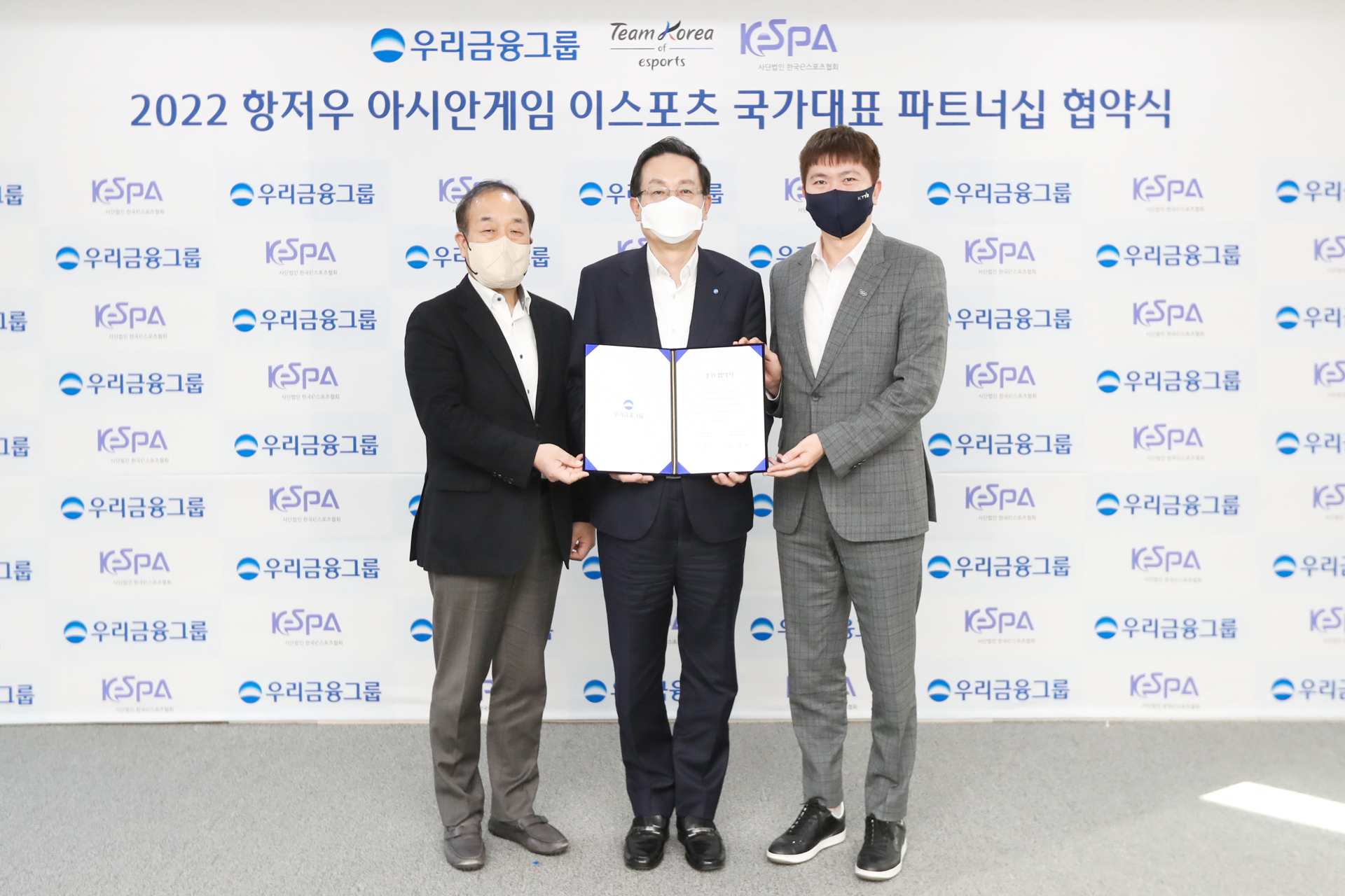 우리금융그룹(회장 손태승)은 지난 28일 서울 중구 소재 우리금융그룹 본사에서 2022 항저우 아시안게임에 참가하는 한국e스포츠협회 국가대표팀 공식 후원 협약식을 가졌다고 29일 밝혔다.