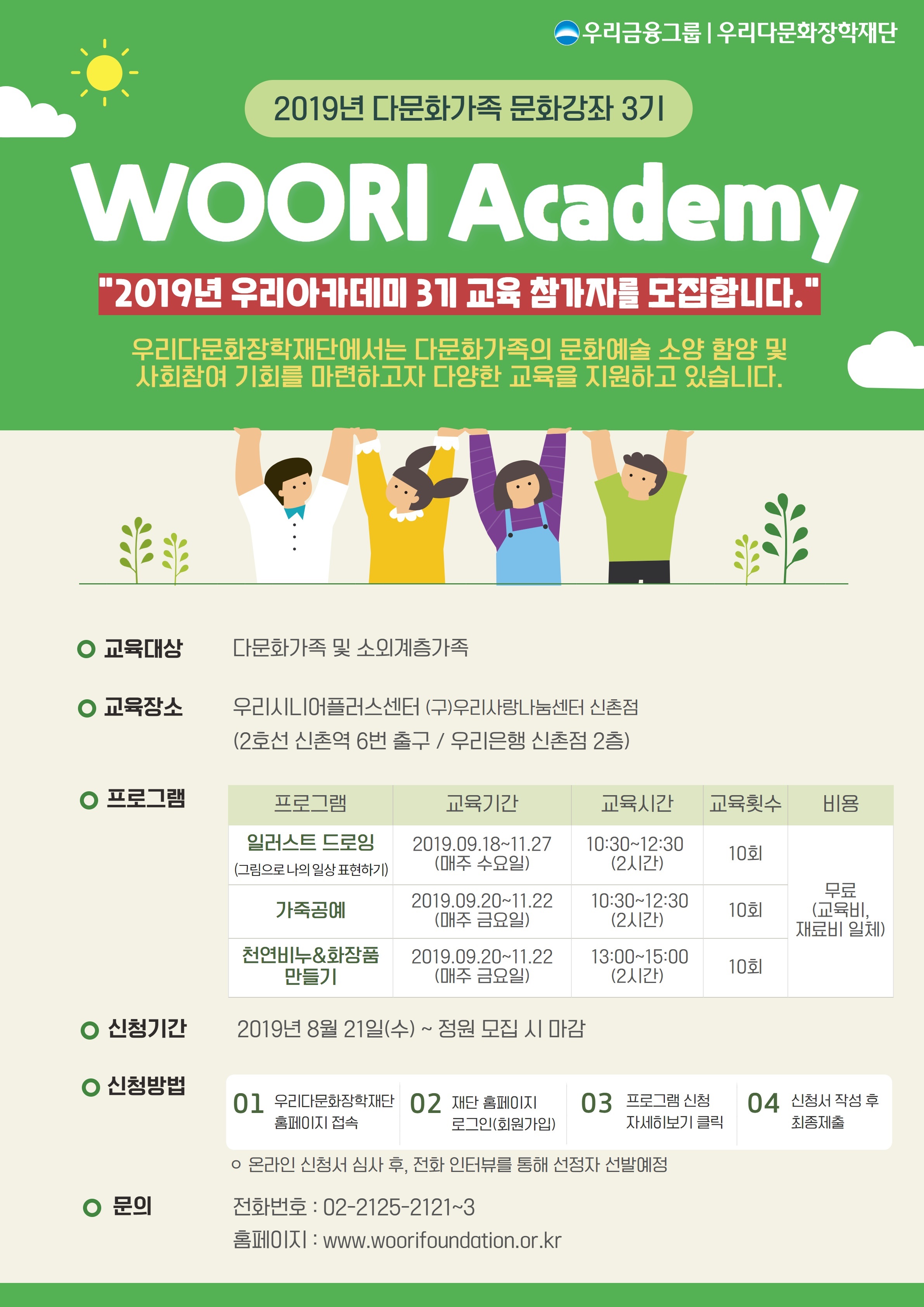 우리금융그룹, 우리다문화장학재단 다문화가족 대상 문화강좌 ‘우리아카데미’ 참가자 모집